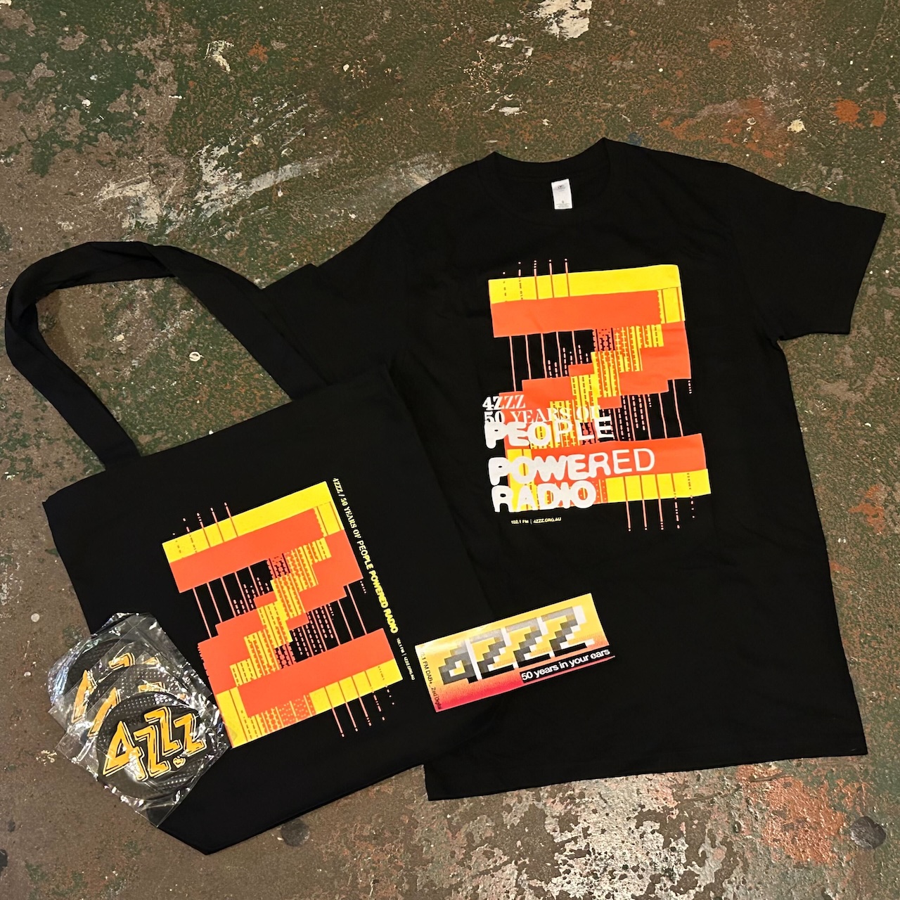 In traditional terms, the 50th anniversary is celebrated with GOLD. While we're not particularly interested in being traditional, this is one we can get behind. Since 1975 we've been broadcasting radical radio to South East Queensland, and to mark 50 years we're releasing a limited edition GOLD 4ZZZ50 tee!
